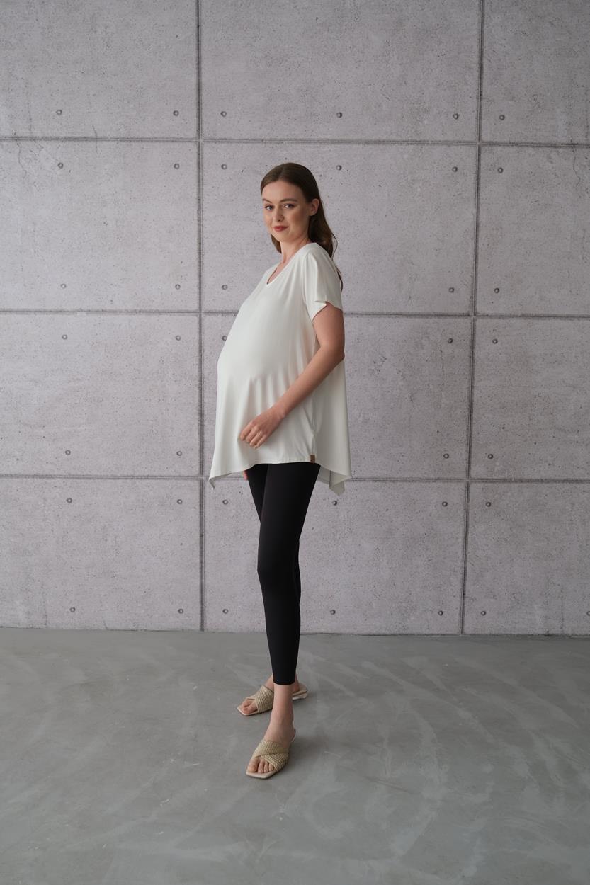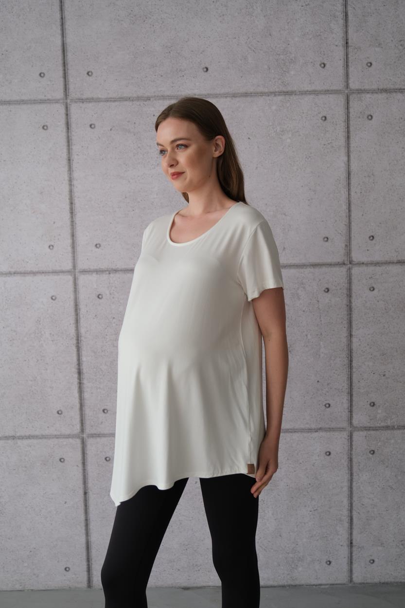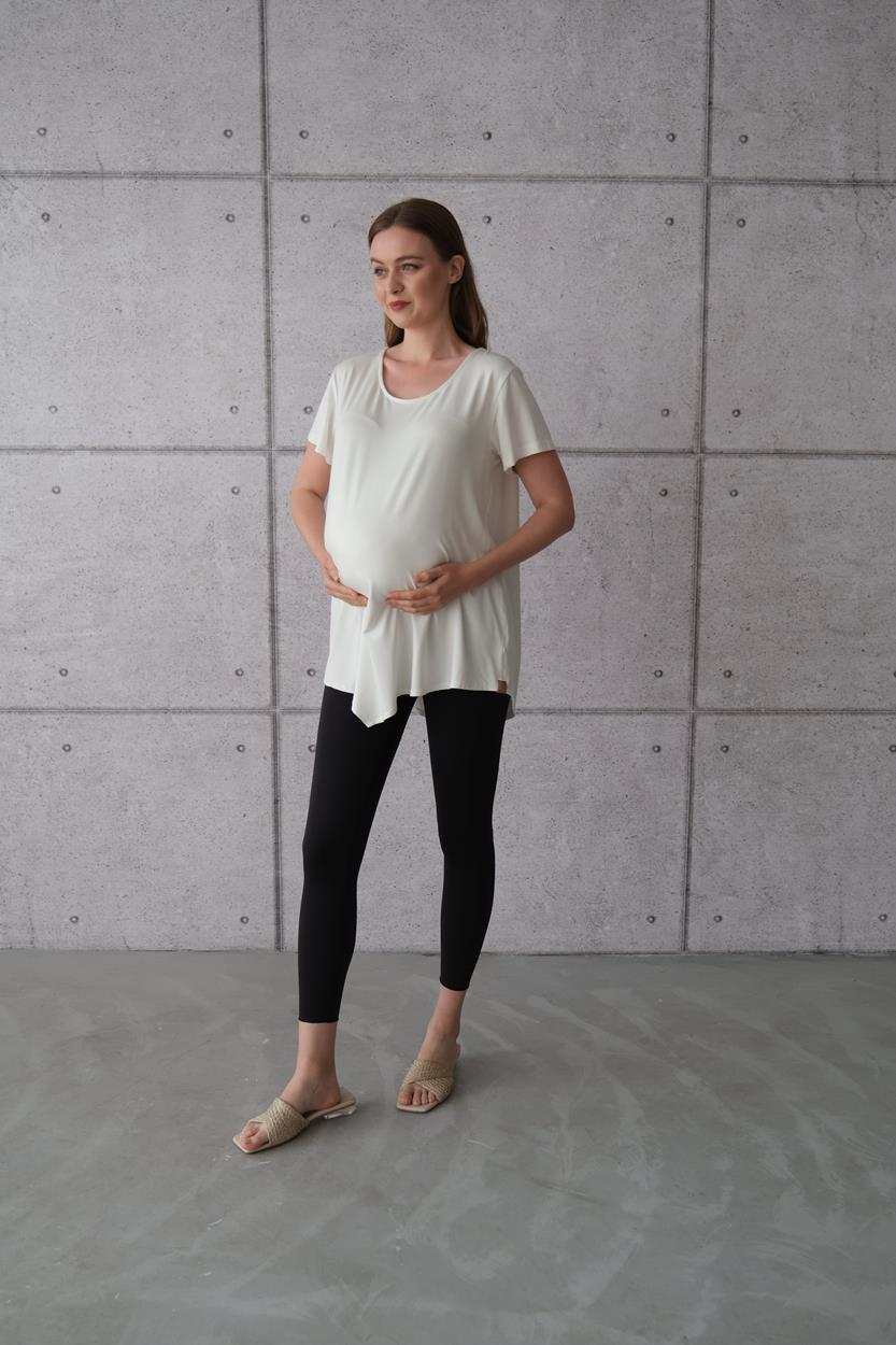 Kadın Hamile Asimetrik Uzun Basic Tişört