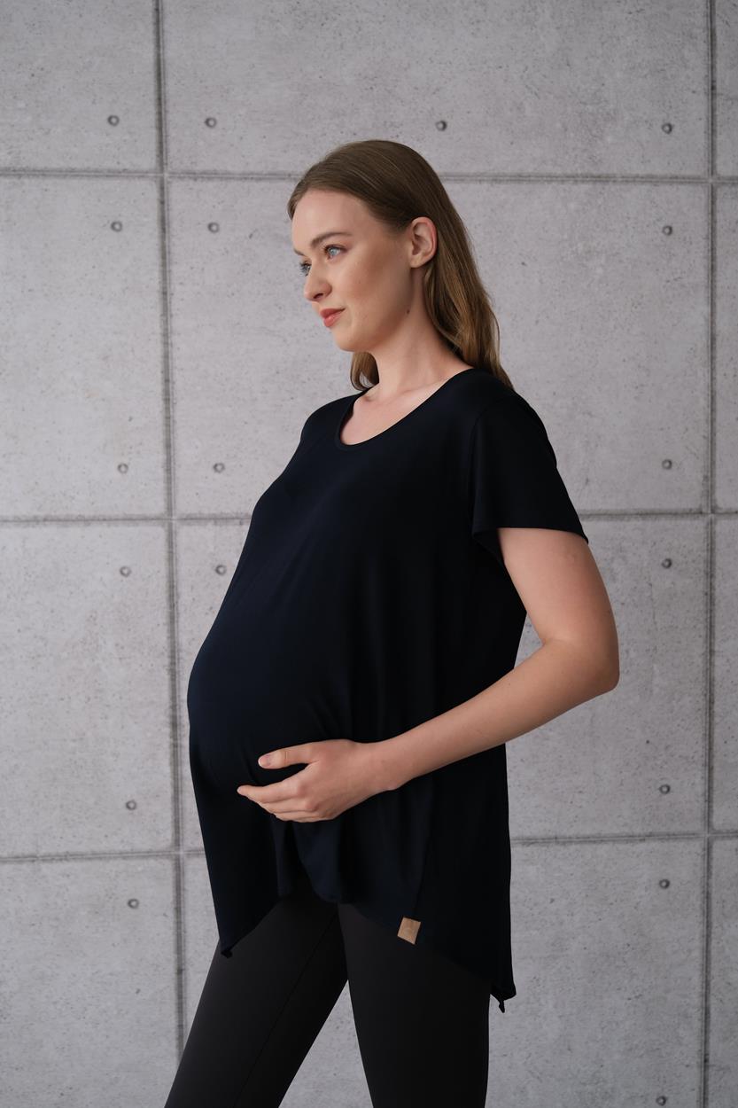 Kadın Hamile Asimetrik Uzun Basic Tişört