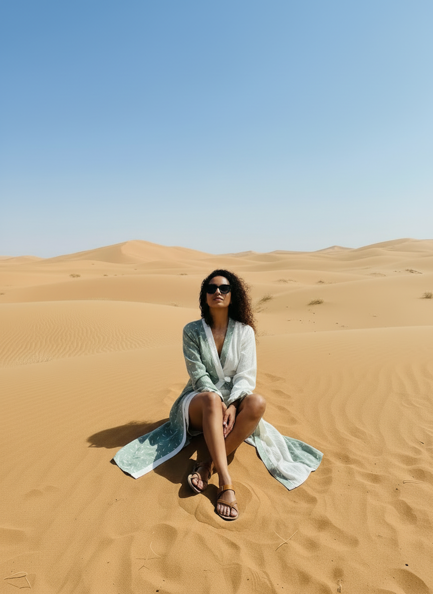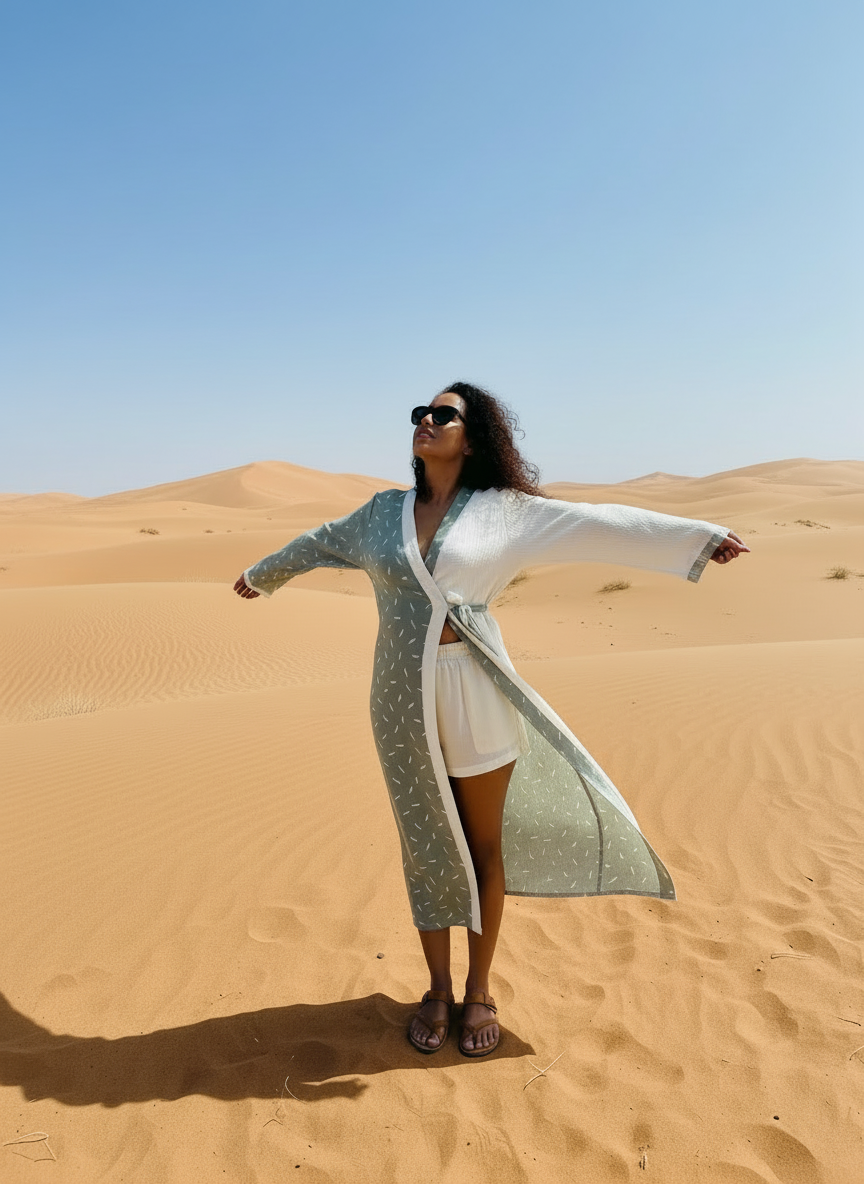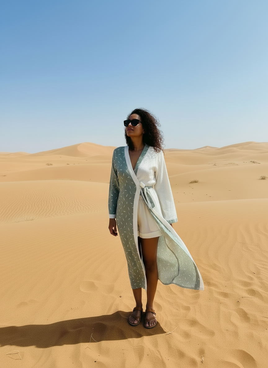 Kadın Tesettür Pamuklu Uzun Kimono & Kaftan