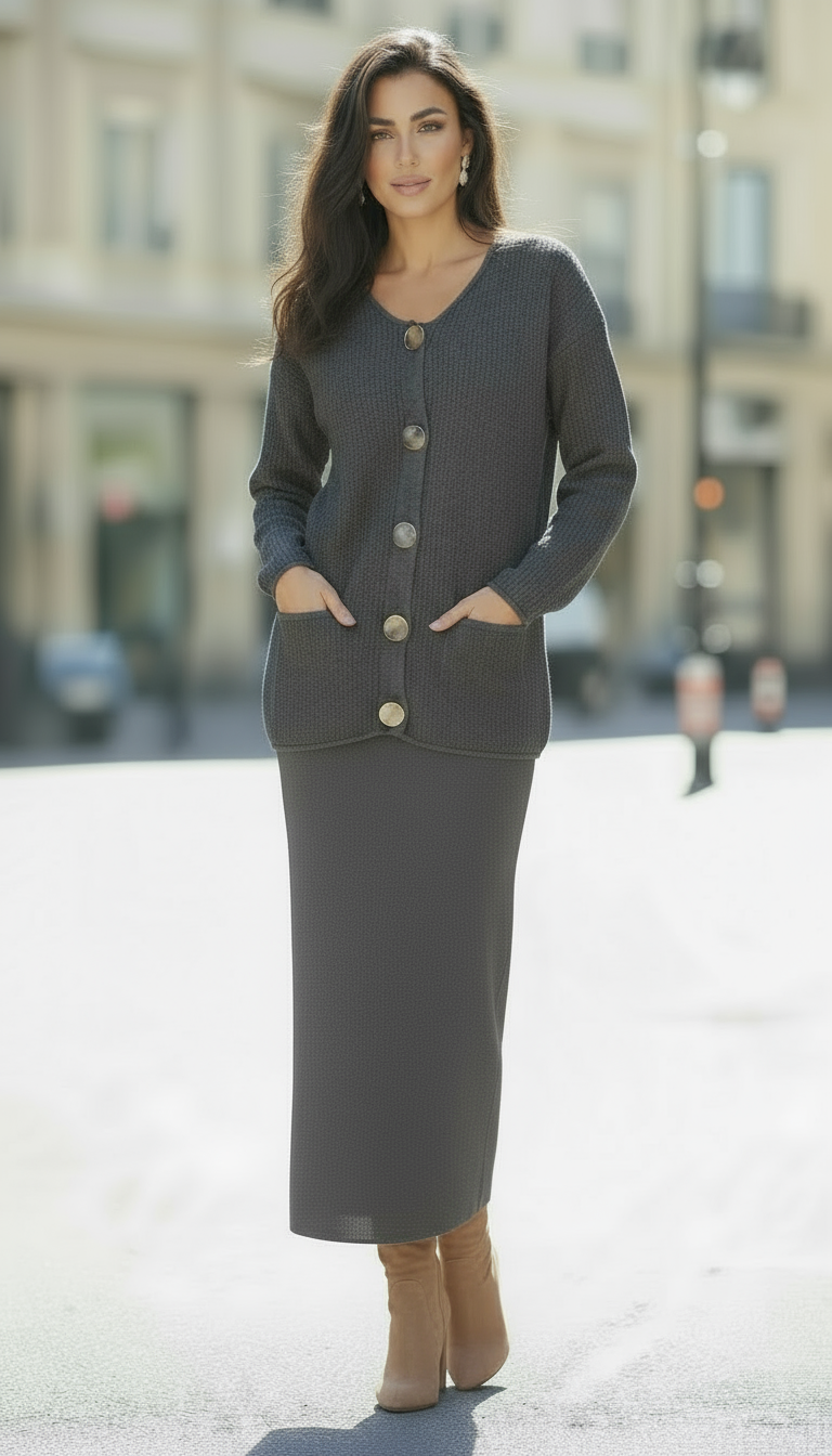 Kadın Tesettür Triko Hırka-Kalem Etek Takım