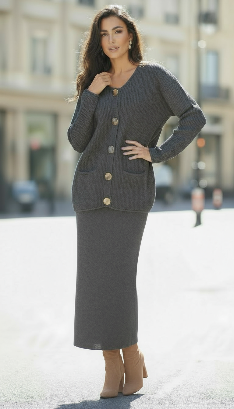 Kadın Tesettür Triko Hırka-Kalem Etek Takım